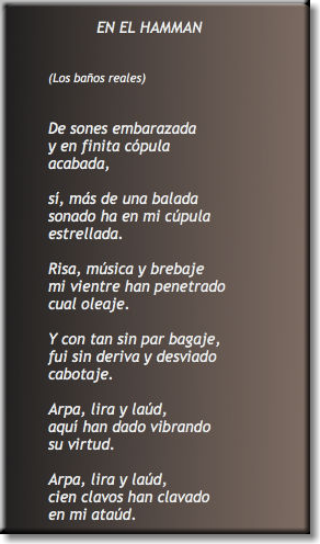 Tres poemas de la colección recopilada en la obra “A la sombra delo colibrí” refiriendose a la Alhambra de Granada.